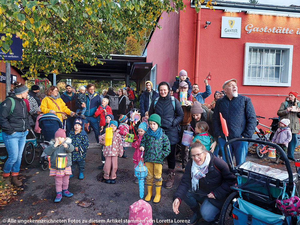 Zum Laternenumzug versammelten sich bei Einbruch der Dunkelheit über 100 Familien. Bald darauf schwebten helle und bunte Lichter die Waldstraße entlang bis zum Sternwald. Zurückgekehrte Kinder wurden mit einer Brezel von der Läckerei am Gerwigplatz begrüßt – ein zünftiger Einstand des neuen Pächterpaars in der Wiehre.